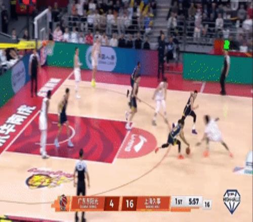 前半节广东三分全铁失误不少(胡队三分3中0,上空篮还不进),半节落后上海6-16。