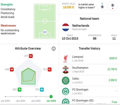 与此同时,主帅斯洛特的选择明确显示,他依然高度重视范戴克的可靠性。