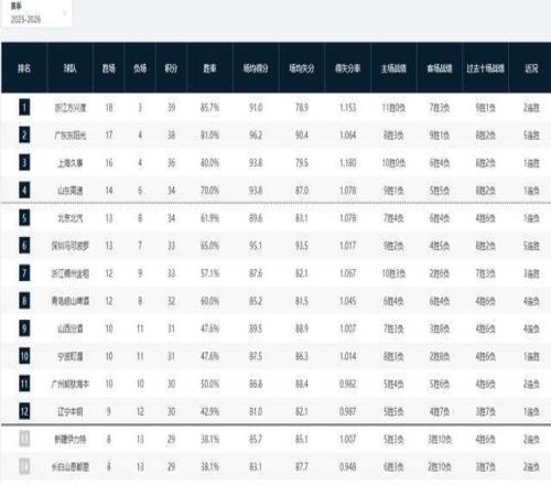 CBA最新排名出炉!广厦杀回第一,山东升至第4,辽宁新疆全部翻车