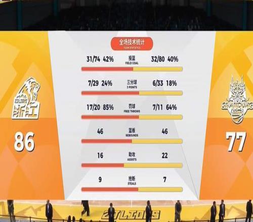 77-86!山东男篮未能实现双杀,客场惨败给了卫冕冠军广厦队,被人家轻松实现了复仇。强援珀赛尔复出手感冰冷,16投2中,只拿到7分4篮板9助攻。广厦队则是靠外援赢得了比赛,3大外援合砍53分,本土球员只拿到33分。