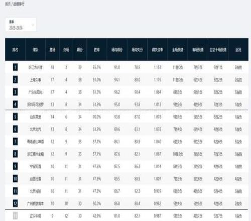 CBA积分榜最新排名!3队哄抢第一,黑马杀进前4,辽宁跌出季后赛