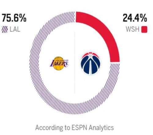 北京时间1月31日,NBA常规赛迎来湖人与奇才的比赛。湖人在上一场比赛中以99-129不敌骑士,遭遇惨败。目前他们在西部排名第六,与第七名的胜场差已持平,今日如果再输球,将会掉进附加赛区域。上场比赛湖人整体表现低迷,仅东契奇发挥尚可,贡献29分5篮板6助攻。詹姆斯状态平平,仅得11分3篮板5助攻。拉拉维亚和八寸塁外线手感冰凉,三分球全部打铁,球队外线稳定性亟待提升。反观奇才,近期状态回升,豪取二连胜。上一场比赛,他们以109-99击败雄鹿,全队5人得分上双。尽管球队得分点较多,但真正具备强实力的得分手寥寥无几。其中,乔治表现最为亮眼,拿下23分5篮板5助攻;萨尔贡献16分17篮板的两双数据;米德尔顿、卡林顿和尚帕尼分别得到13分、13 分和12分,多点开花成为奇才取胜的关键。而湖人由于有双星压阵,ESPN给出湖人赢球的概率则高达75.6%。