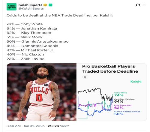 北京时间1月31日凌晨,美媒KS分析了目前联盟最可能被交易的球员,公牛的科怀-怀特概率高达74%联盟第一,就连库明加、扬尼斯等申请交易的球员都在他之后。