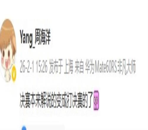 YB三号位Yang更新微博:决赛本来解说的变成打决赛的了。